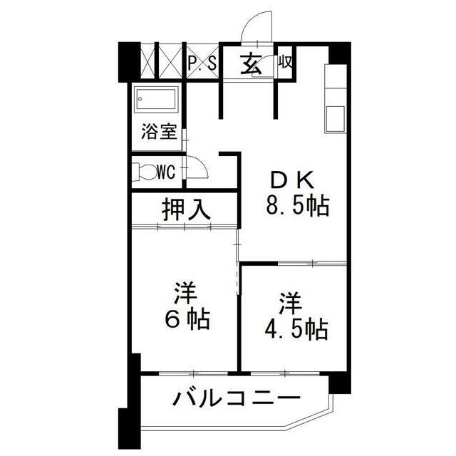| 間取り | 2DK(DK8.5 洋6 洋4.5) | 主要採光面 | - |